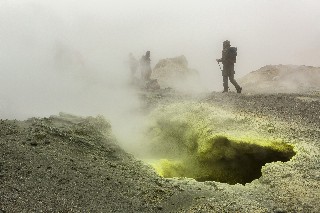 Однажды, вулканологи, обследовавшие озеро на резиновой лодке, чуть не погибли. Кислота разъела алюминиевые лопасти весел.