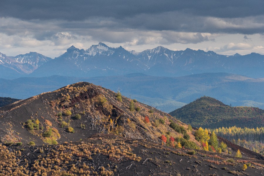 Вулкан Горелый — один из тридцати действующих исполинов на Камчатке. Он расположен на юге полуострова, в 70 километрах от Петропавловска-Камчатского. Вулкан состоит из одиннадцати кратеров, которые протянулись цепочкой на три километра и образовали хребет. Лучше всего, как вы, осмотреть вулкан с воздуха — в кратерах есть озера, которые с вертолета смотрятся особенно живописно.