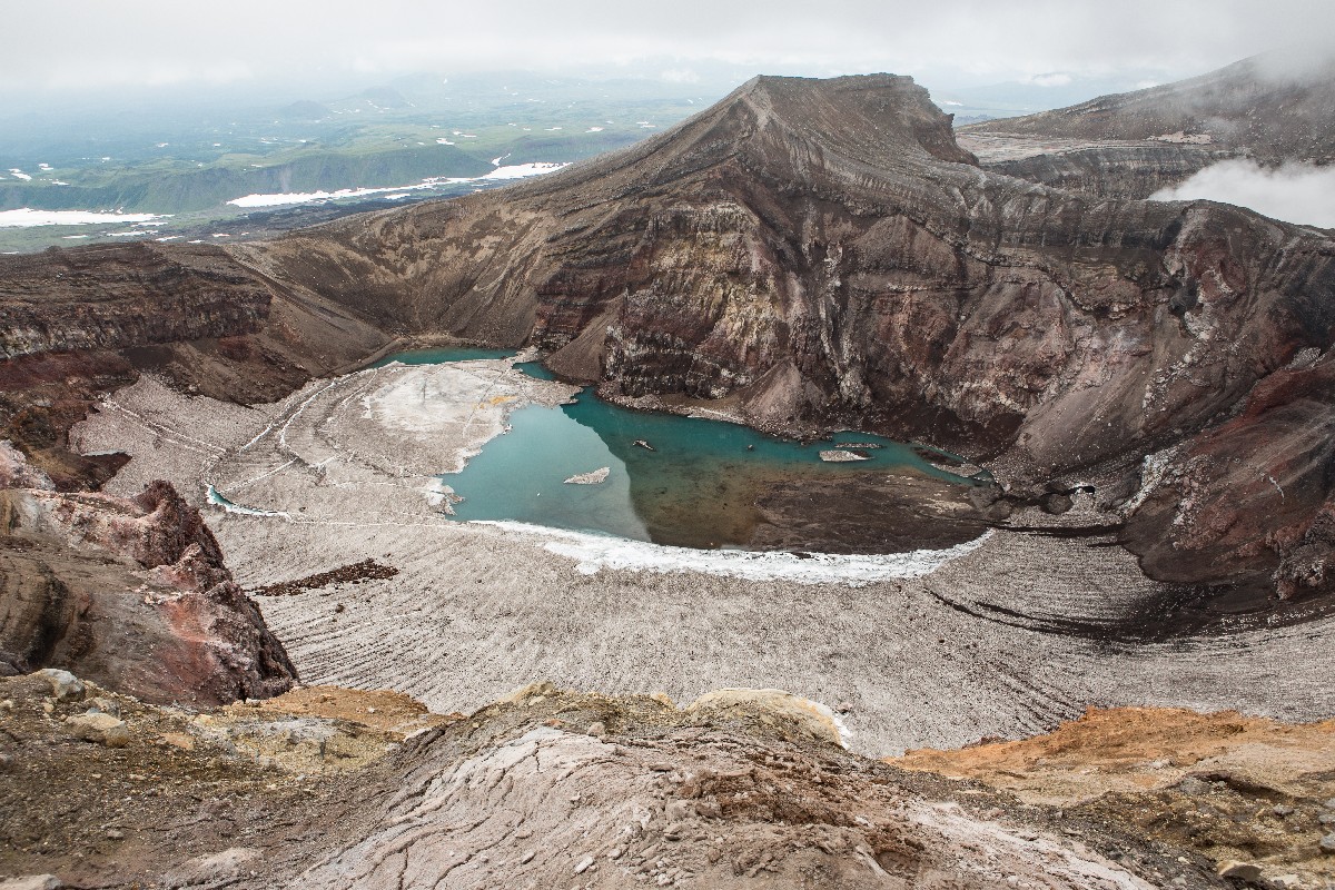 Мутновский — самый доступный, и от этого самый популярный, вулкан на юге Камчатки. Находится в ста километрах от Петропавловска-Камчатского. Если бы в этом приключении не было возможности полететь на вертолете, мы бы поехали сюда на внедорожнике. По дороге до Мутновского можно увидеть Вилючинский вулкан, Вилючинский водопад, действующий вулкан Горелый.