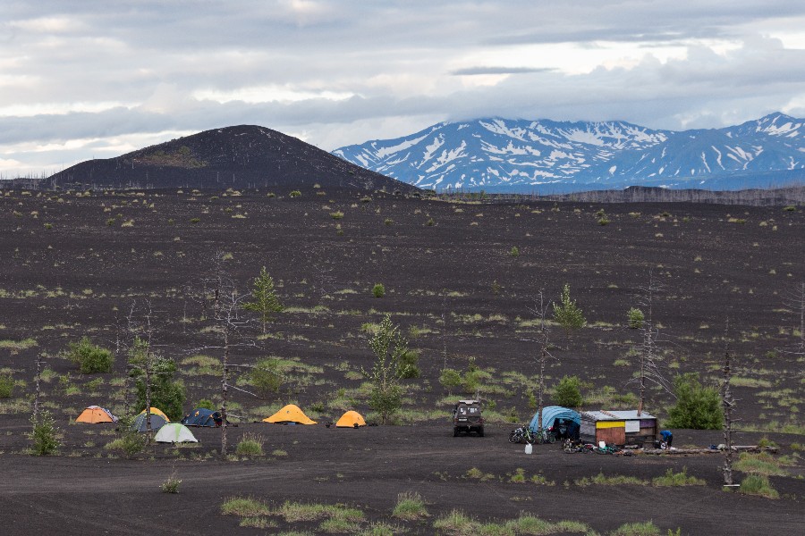 У подножия вулкана находится «База Луноходчиков», она же «Ленинградская». Здесь проводили испытания первых в мире луноходов «Луноход-1» и «Марсоход-1» — поверхность и ландшафты схожие с Луной. Сегодня на этом месте туристы разбивают кемпинги перед восхождением на Толбачик.