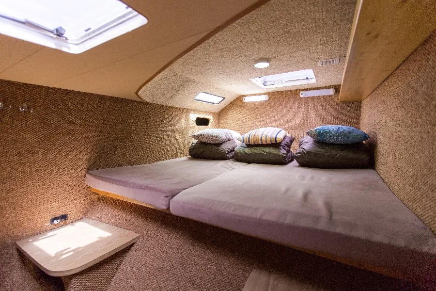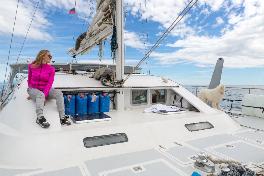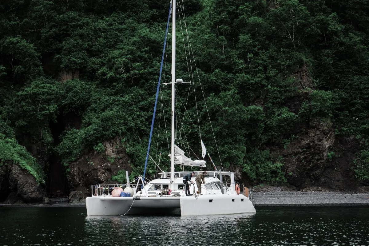Парусно-моторный катамаран KOSATKA — лучший вариант для круиза, который мы нашли на Камчатке. Судно длиной пятнадцать метров, шириной восемь, подходит для прогулок по Авачинской бухте и для выхода в океан. На катамаране пять кают, три — двухместные, две — трехместные. Максимум на борту может разместиться двенадцать пассажиров.