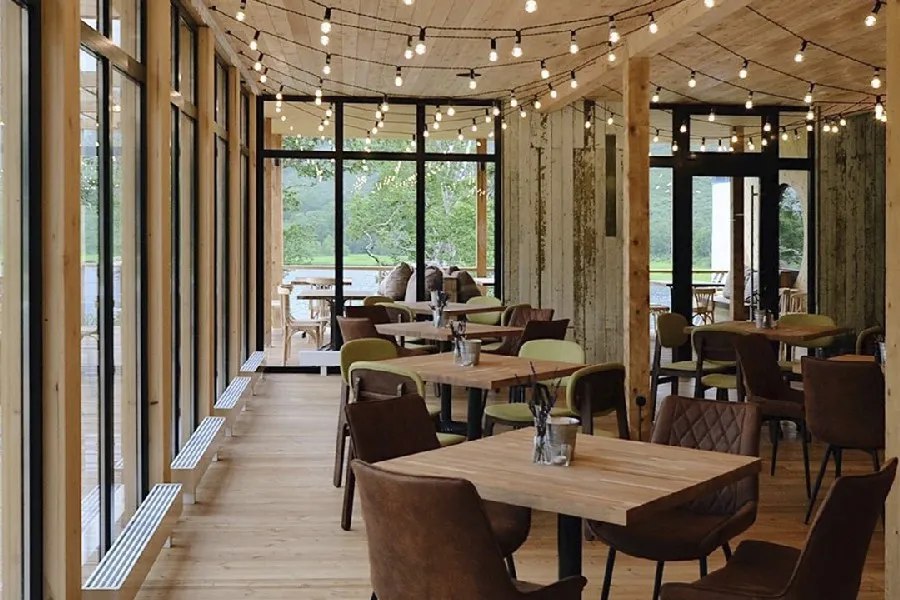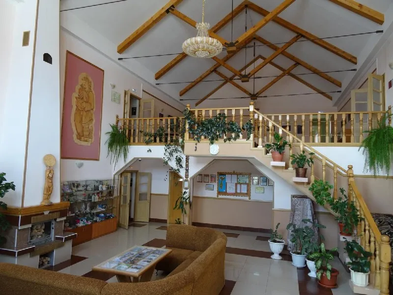 Также есть парковка, спортивная площадка, открытый бассейн с термальной водой, ресторан на пятьдесят мест, баня, зона барбекю, конференц-зал. Зимой здесь заливают каток, работает прокат лыж и коньков. В стоимость проживания входит завтрак.