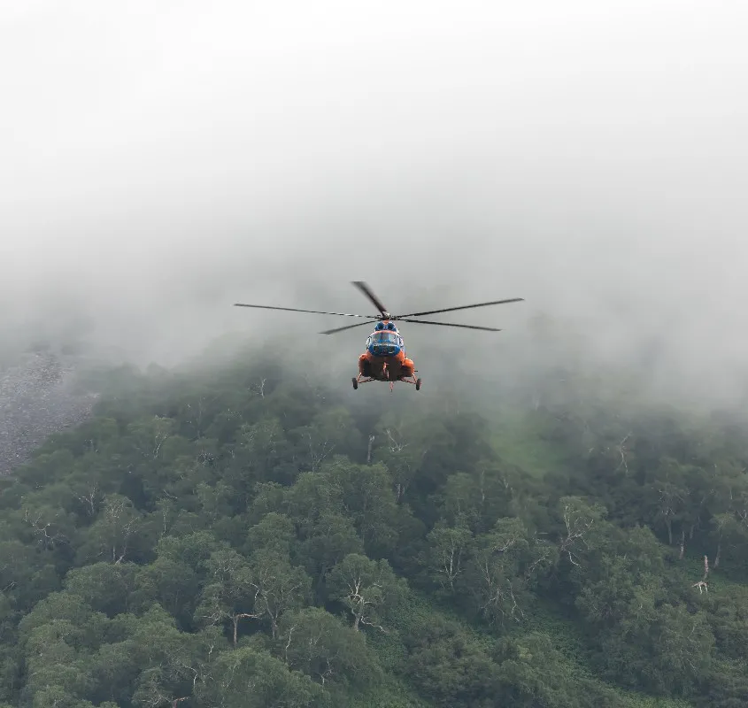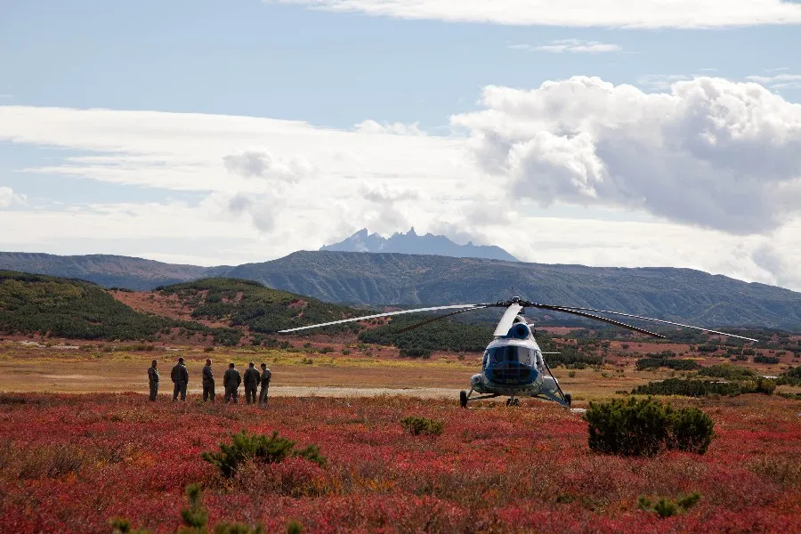 Транспорт: микроавтобус Mercedes Sprinter, вертолет МИ-8, парусно-моторный катамаран KOSATKA, вахтовка на базе КАМАЗа, морские каяки