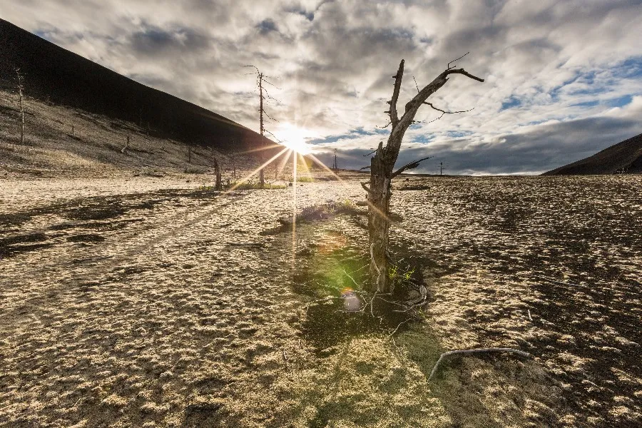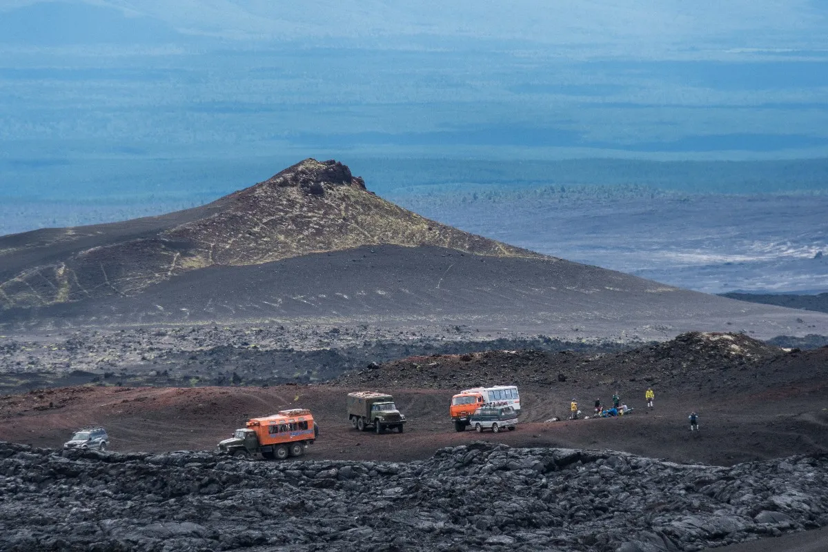 Местами здесь еще можно ощутить «дыхание земли», даже пожарить сосиски над струями горячего газа. Второе место, которое мы посетим — конуса Северного прорыва, образовавшегося во время БТТИ. Оттуда можно увидеть место, где в 70-е годы прошлого века испытывали первые луноходы.