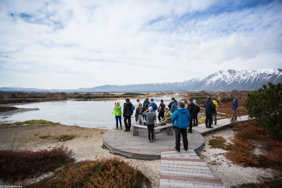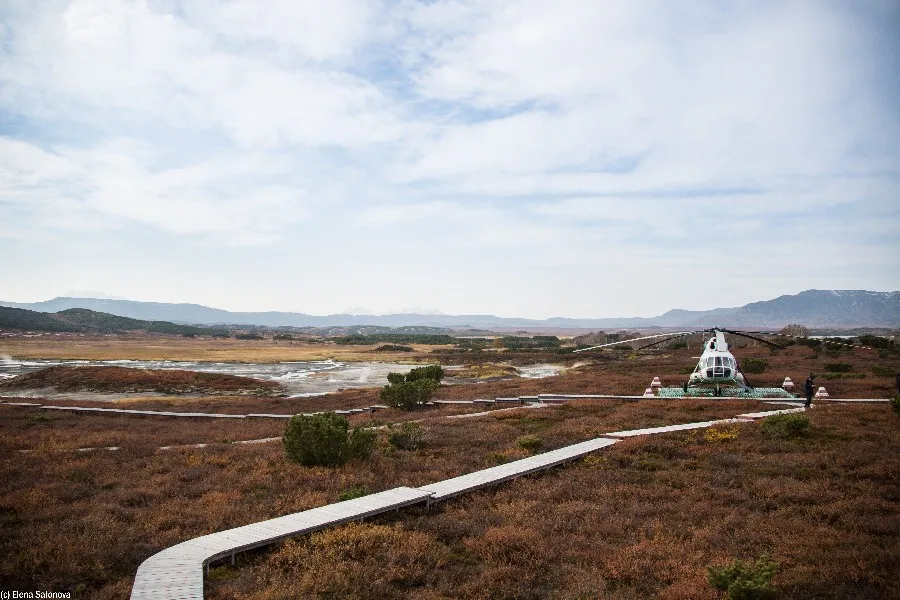 После приземления вас встретит сотрудник заповедника. Он проведет инструктаж и экскурсию. От вертолетной площадки проложены деревянные настилы, которые соединяют обзорные площадки с видами на основные достопримечательности. Для безопасности, передвигаться по территории долины можно только по ним. Участки, заросшие ярко-зеленой сочной травой, часто скрывают под собой лужи с кипятком. Места где растет полынь, наоборот безопасны — растение приживается только на крепкой почве. С деревянных настилов можно сходить только с разрешения проводника.