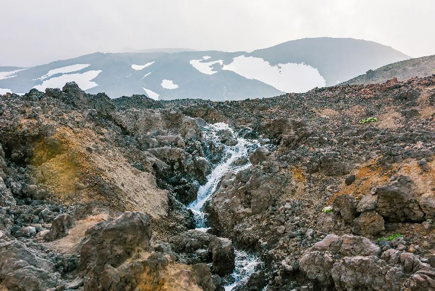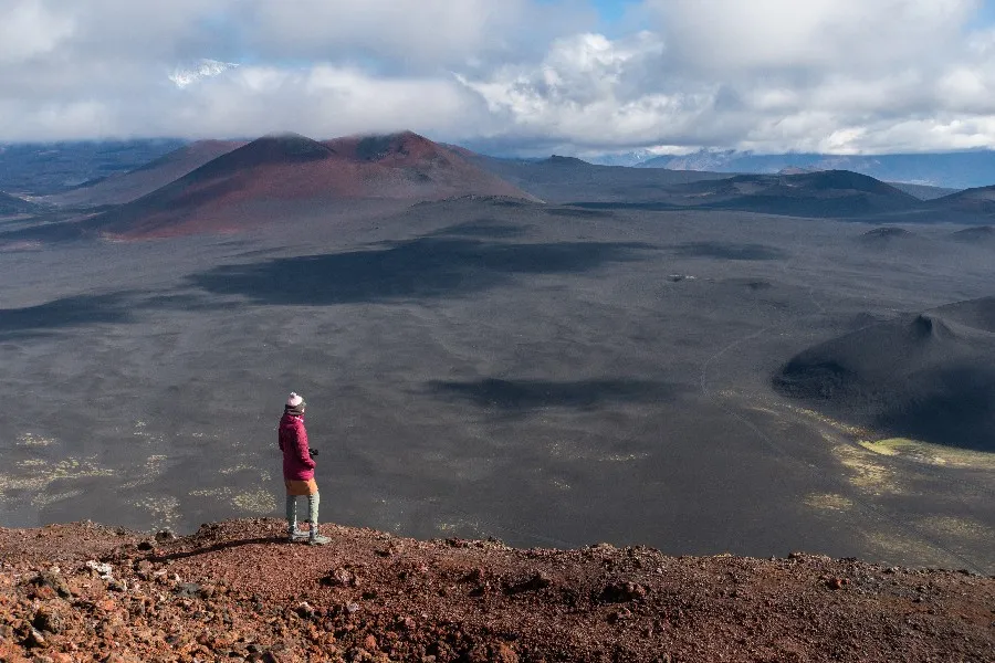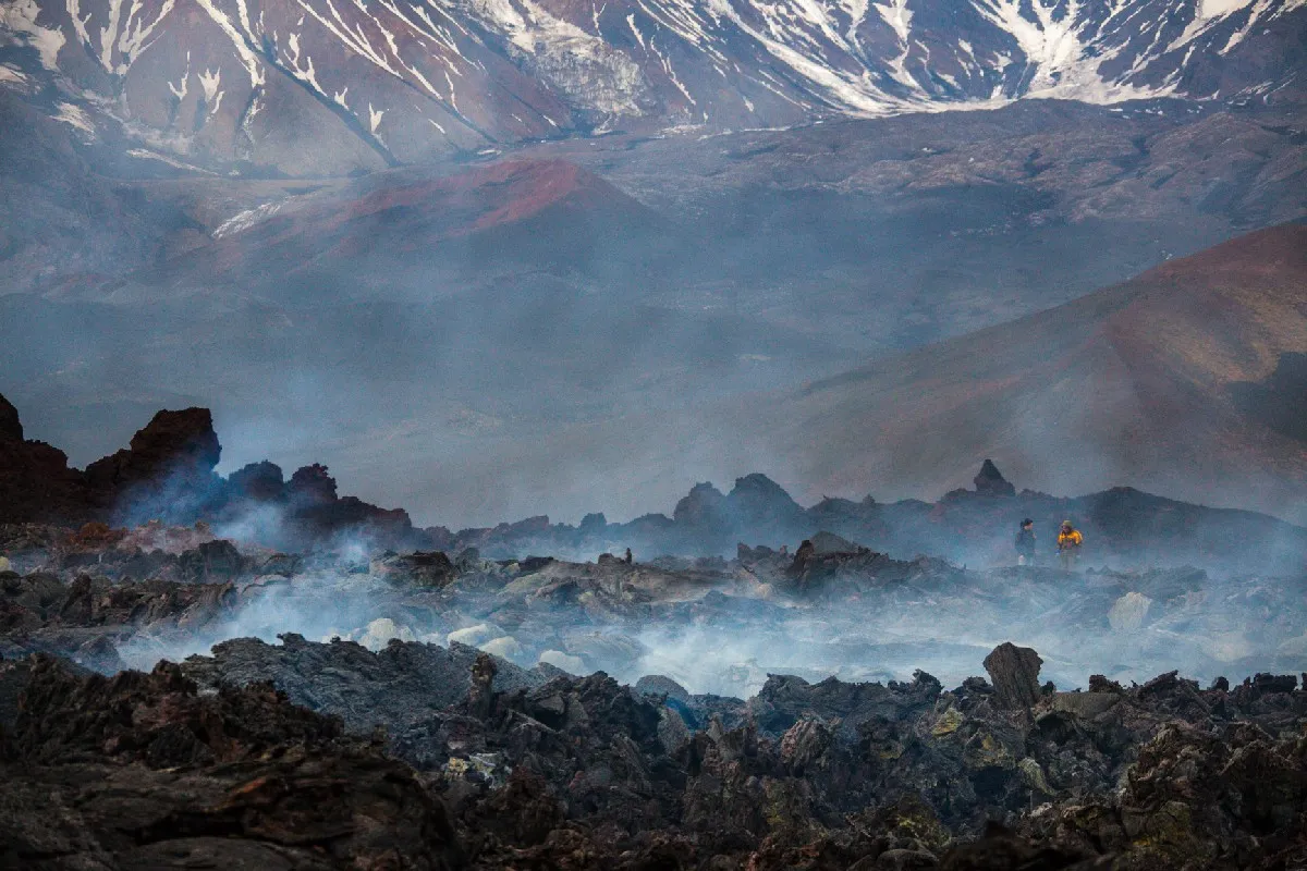 Толбачик — это массив из двух вулканов — Острого Толбачика и Плоского Толбачика. Первый потухший, второй — действующий. Расстояние от вулканов до столицы полуострова 350 километров. Добраться можно на машине или вертолетом. Фишка места — застывшие лавовые реки. В 2012 году здесь можно было увидеть движение вязкой раскаленной лавы и небольшие извержения с расстояния 10–20 метров. Из-за того, что это было относительно безопасно, местные их называли «туристические извержения».