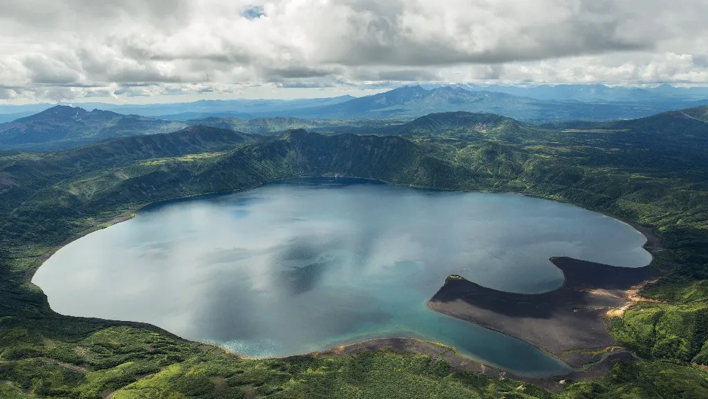 Вулкан Горелый — один из тридцати действующих исполинов на Камчатке. Он расположен на юге полуострова, в 70 километрах от Петропавловска-Камчатского. Вулкан состоит из одиннадцати кратеров, которые протянулись цепочкой на три километра и образовали хребет. Лучше всего, как вы, осмотреть вулкан с воздуха — в кратерах есть озера, которые с вертолета смотрятся особенно живописно.