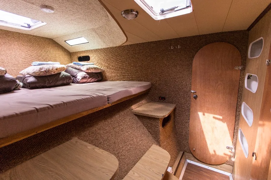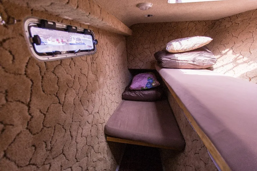 - Односпальные и двуспальные кровати, в трехместных каютах полки с матрасами на трех человек
