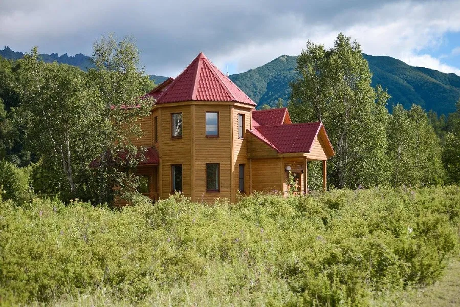 База «Тумрок» находится в 12 километрах от действующего вулкана Кизимен. Вокруг дикая природа — ближайший поселок Лазо в сотне километрах отсюда, а до Петропавловска пятьсот. Фишки базы — купальни с термальной водой, уединенность и окружающие пейзажи. В коттедже из камчатской лиственницы девять номеров. Шесть стандартных, два люкса и один семейный номер. Максимум на базе можно разместить 27 человек.