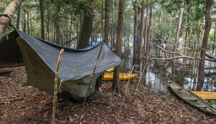 После пикника на воде вместе с сопровождающими, хорошо знающими местность, подберете место для стоянки в джунглях. На ужин вам будут предложены блюда, приготовленные по местным традициям на костре. Для ночевки будут подготовлены большие гамаки с противомоскитными сетками.