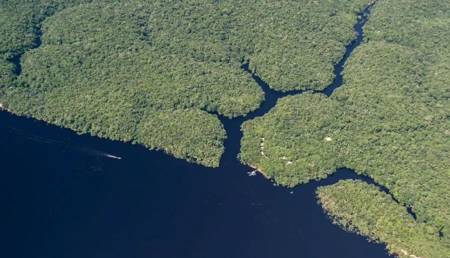 После ланча трансфер к причалу и на гидроплане, чтобы добраться в лодж-отель «Анавилханас Джангл», расположенный в джунглях, недалеко от реки Риу-Негру в 180 километрах от Манауса. Получасовой прелет проходит через большую часть национального парка Анавилханас.