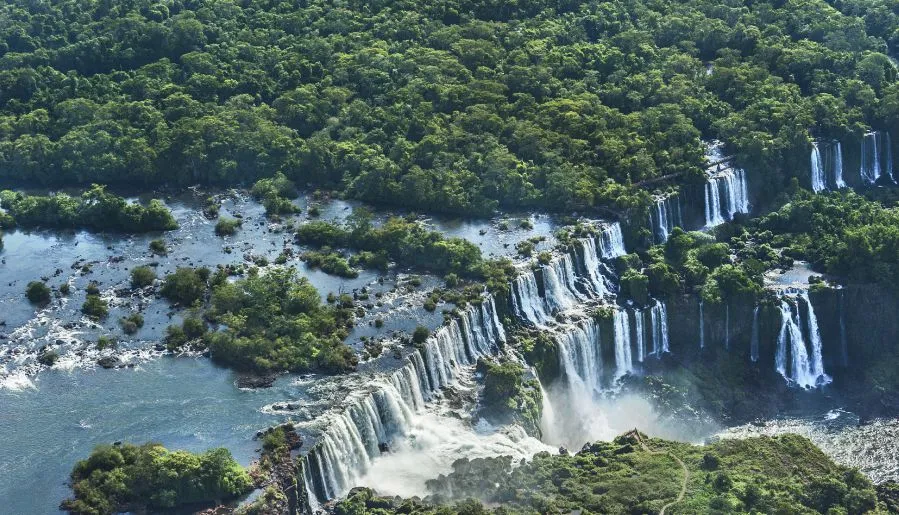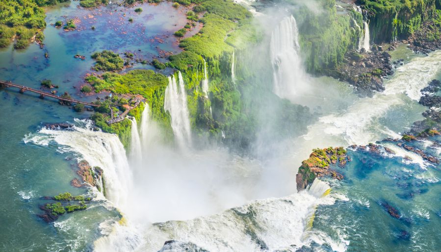 Осмотрев Игуасу с земли и воды, отправитесь на вертолетную прогулку, чтобы с высоты заглянуть в Глотку Дьявола — самую впечатляющую часть водопадного комплекса.
