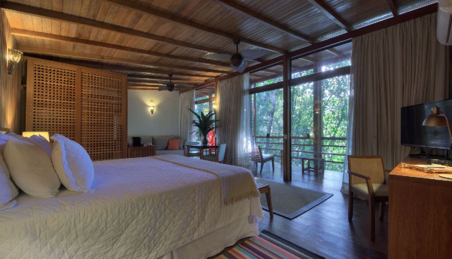 В каждом номере отеля светло, минималистично и просторно — самая небольшая комната занимает 42 квадратных метра. Отделка номеров выполнена из амазонского дерева и травертина — известнякового туфа. В каждой комнате есть кофемашина, мини-бар и кондиционер. Наборы для ванной состоят из косметики локальной бразильской фирмы «Гранадо».