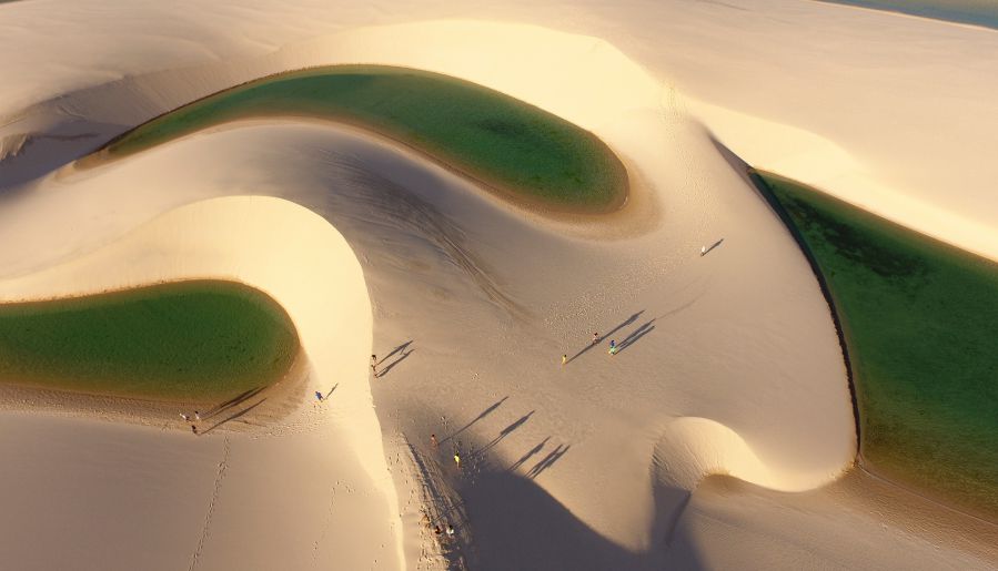 Утром вы отправитесь к дюнам Ленсойс-Мараньенсис, единственной пустыни на планете, на территории которой находятся десятки пресноводных озер. Этот национальный парк является одним из самых фотогеничных районов Бразилии, с его извилистыми белоснежными песчаными холмами, уходящими вдаль, и чистейшей дождевой водой, образующей небольшие водоемы между ними.