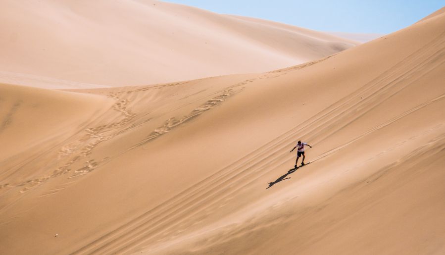 Вы проведете день катаясь на багги или квадроциклах. Поймаете песочные волны на специальных сэндсерфах. После обеда займетесь кайтсерфингом и искупаетесь в лазурных озерах среди песчаных дюн.