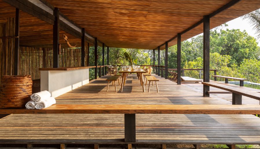 Отель подходит для тех, кто хочет с комфортом отдохнуть посреди дикой природы. Гостям предлагаются три варианта проживания: бунгало, коттедж, панорамный лодж. Номера построены в традиционном стиле, что позволяет в полной мере окунуться в атмосферу жизни в джунглях. Все апартаменты оснащены террасами с гамаками.