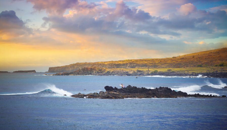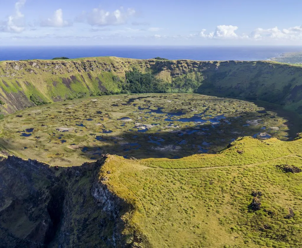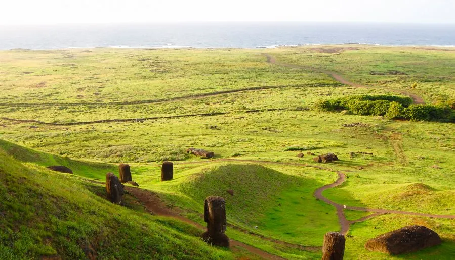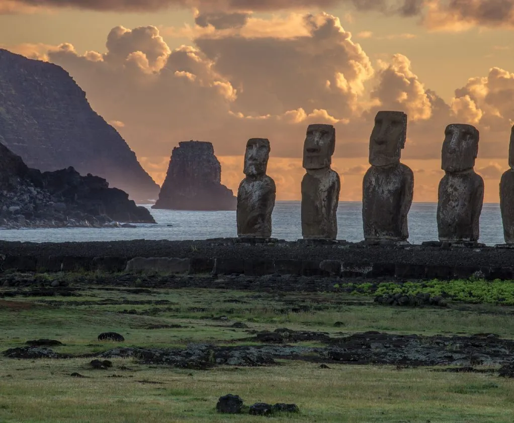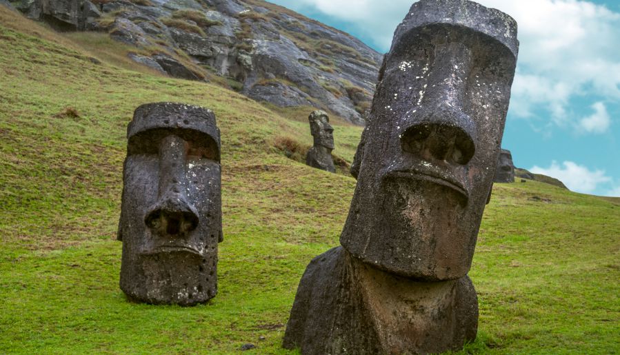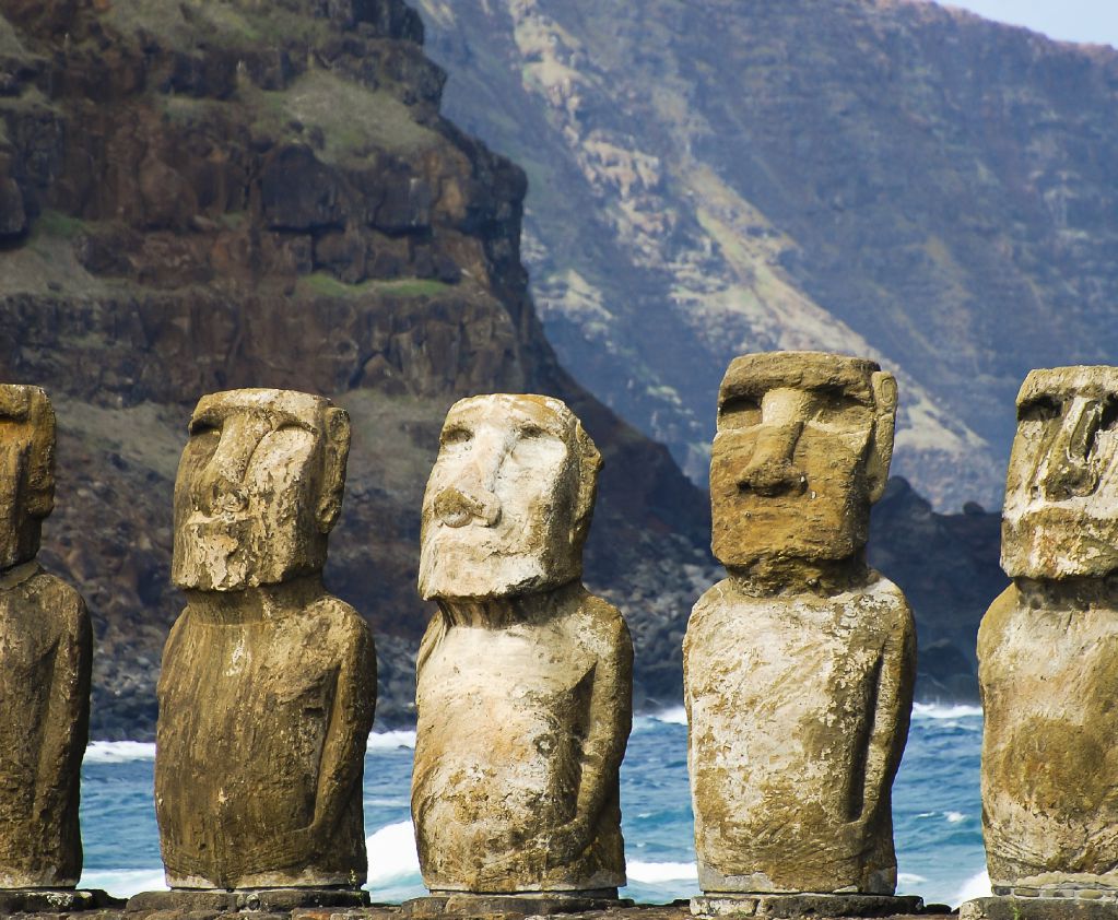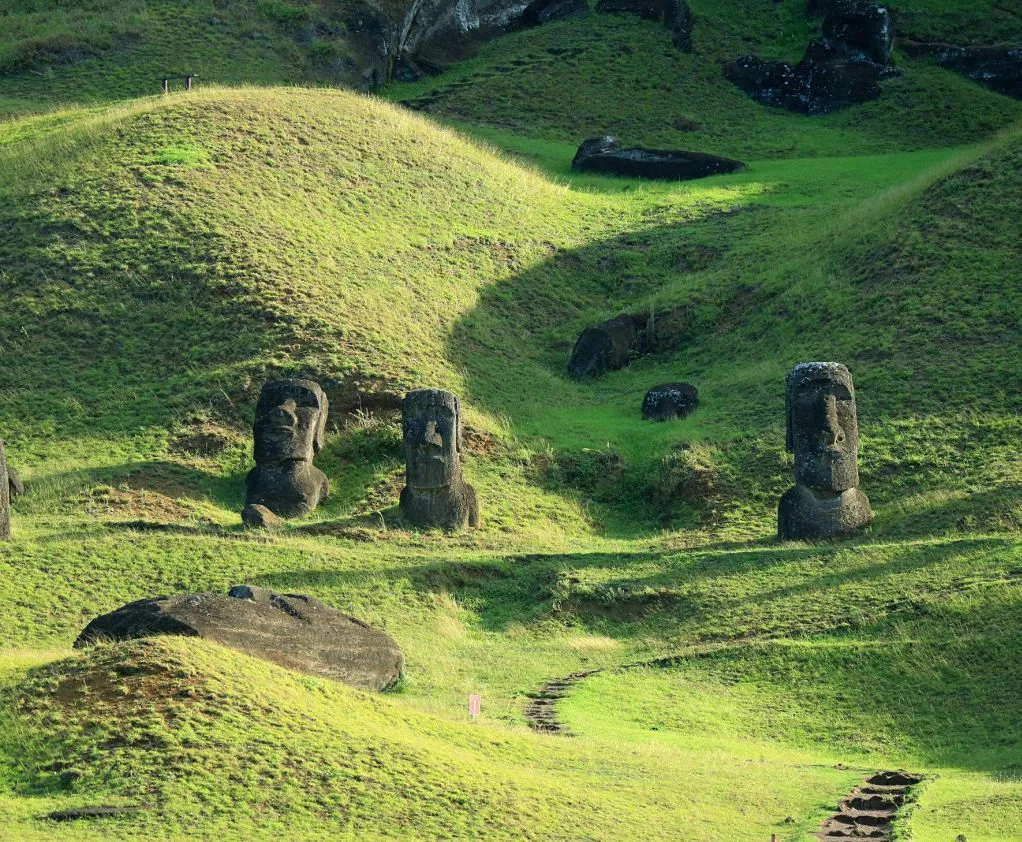 - побывать на острове Пасхи — увидеть потухший вулкан Рано Као и каменных истуканов моаи