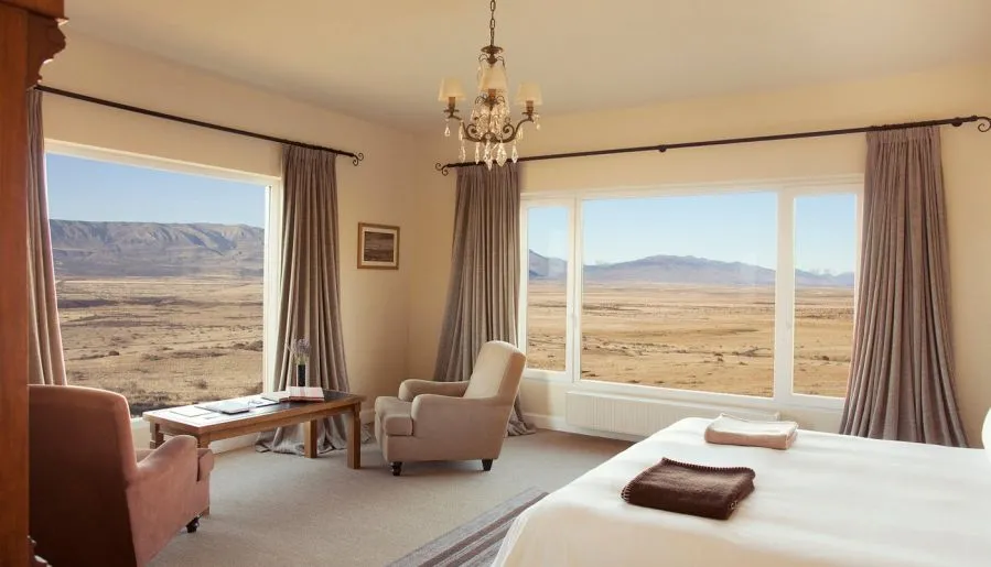 В интерьере, экстерьере отеля сочетаются черты традиционных креольских домов и современной архитектуры. Номера оформлены в спокойных бежево-коричневых тонах и обставлены антикварной мебелью. Из панорамных окон открывается вид на патагонскую степь, озеро Архентино, долину Анита и парк Торрес-дель-Пайне.