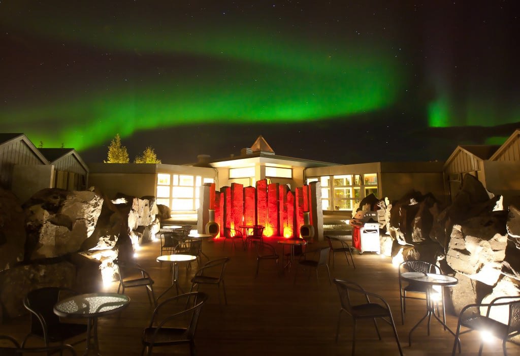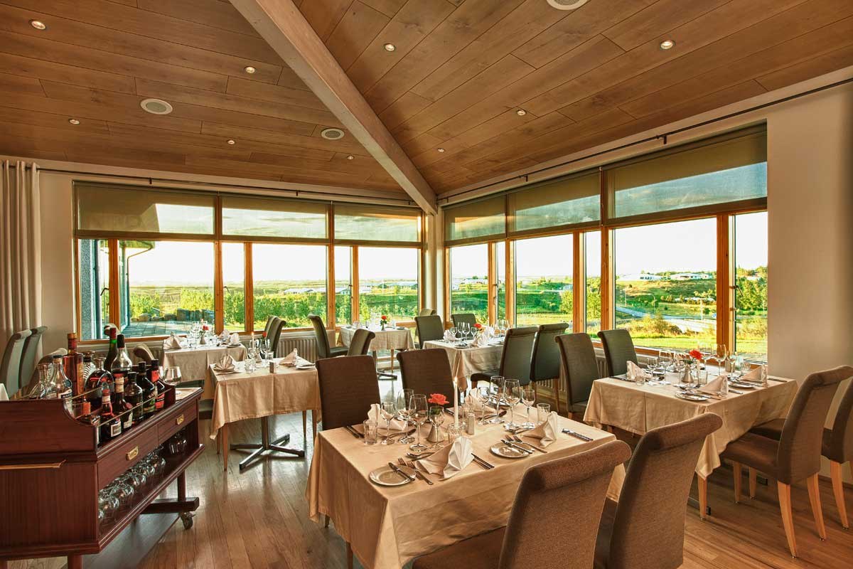 Отель граничит с национальным парком Тингведлир и самым большим озером в Исландии — Тингватлаватн. В отеле есть сауна, гидромассажная ванна под открытым небом и спа-салон. Шеф ресторана при отеле — Агуст Мар Гардарссон, экспериментирует, сочетая несочетаемое. Утиную грудку он готовит с тыквой под клиновым сиропом, куриный паштет — на гренках с томатным мармеладом, а суп из моллюсков — с зелеными яблоками. После обеда можно заказать ликер из ревеня, голубики или водяники в баре отеля.