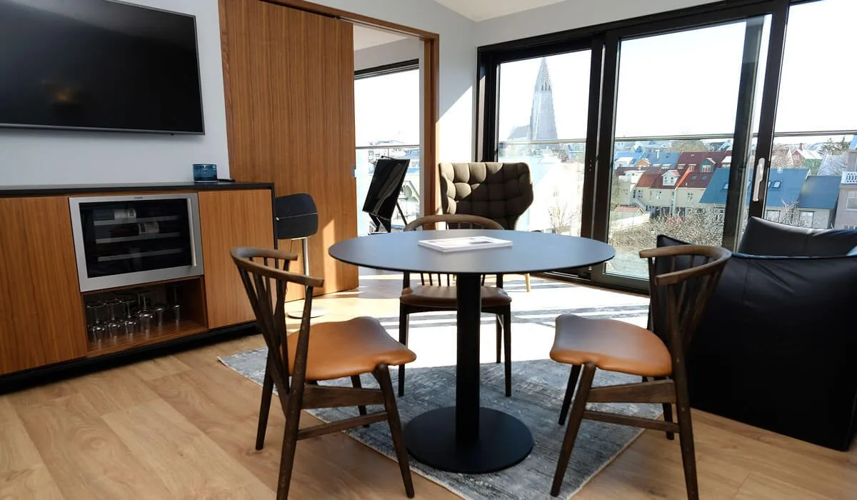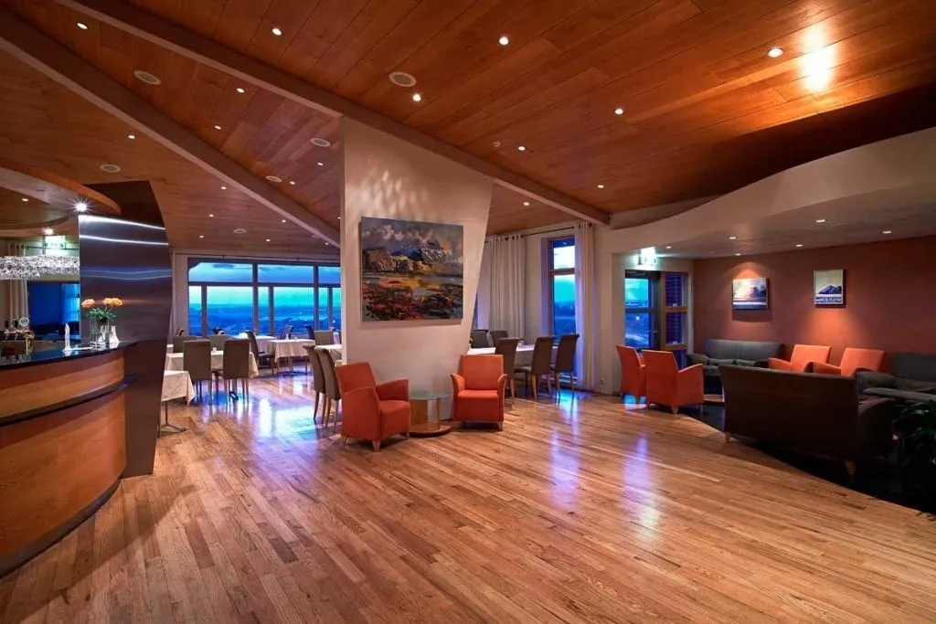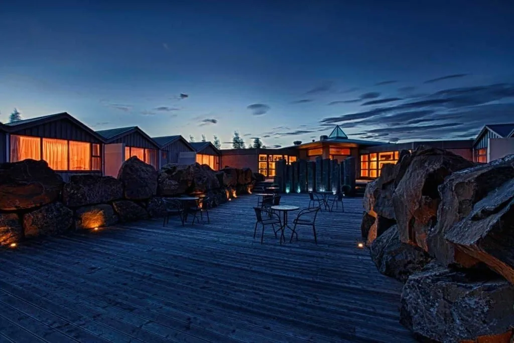 Отель граничит с национальным парком Тингведлир и самым большим озером в Исландии — Тингватлаватн. В отеле есть сауна, гидромассажная ванна под открытым небом и спа-салон. Шеф ресторана при отеле — Агуст Мар Гардарссон, экспериментирует, сочетая несочетаемое. Утиную грудку он готовит с тыквой под клиновым сиропом, куриный паштет — на гренках с томатным мармеладом, а суп из моллюсков — с зелеными яблоками. После обеда можно заказать ликер из ревеня, голубики или водяники в баре отеля.