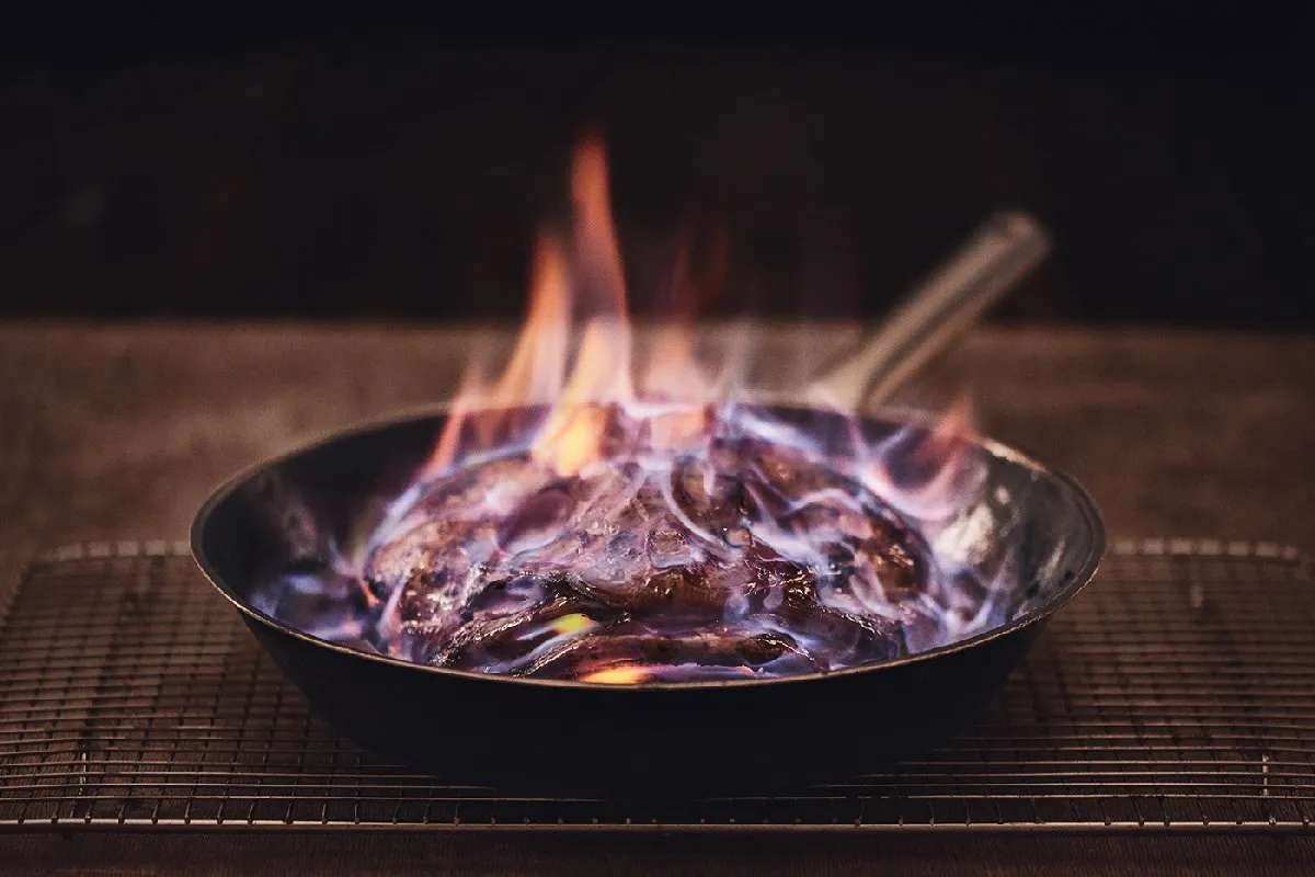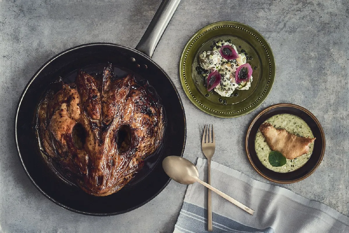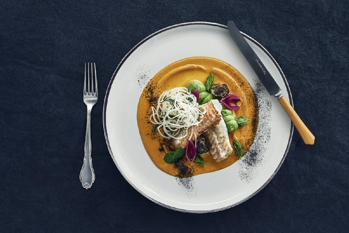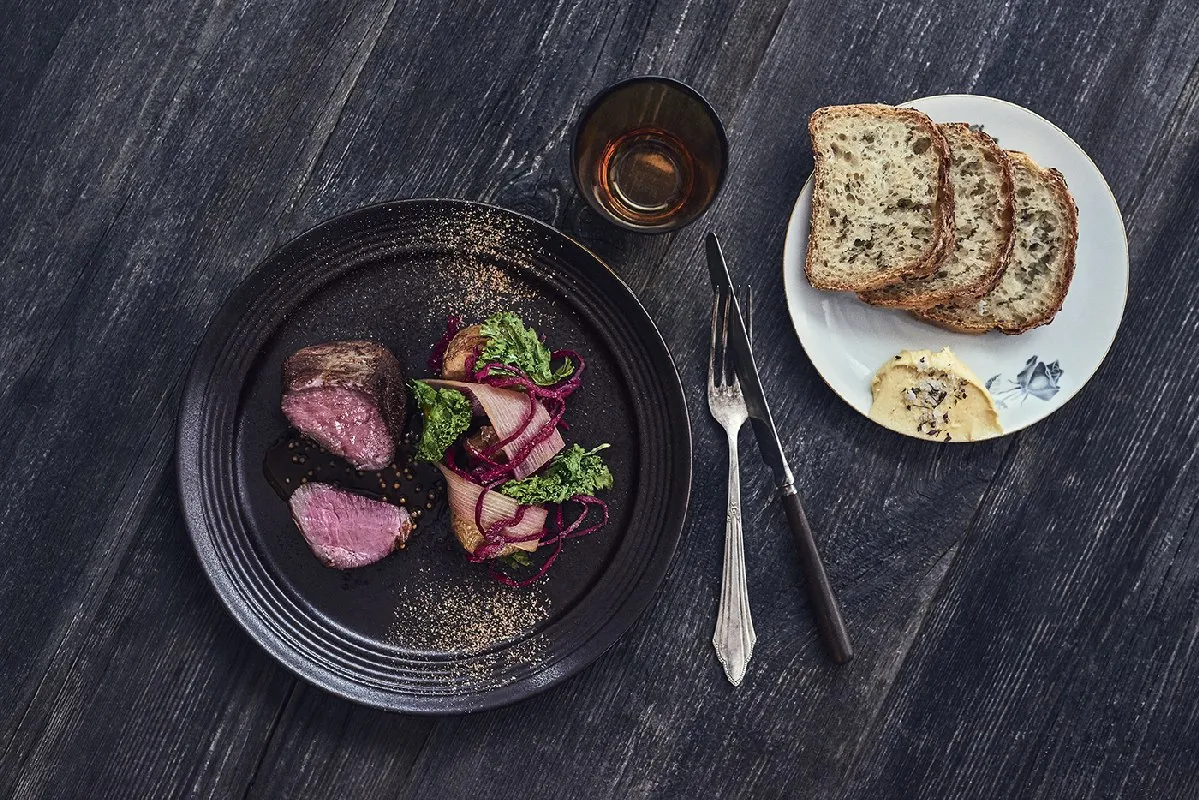 В меню есть дегустационный сет, для тех, кто хочет все и сразу. В него вошли: суп из палтуса с мидиями, изюмом и яблочным пюре, копченая пикша с вареным картофелем, стейк из конины с печеной свеклой и маринованной клубникой, фрикадельки из баранины с вареньем из ревеня, голова трески, приготовленная в курином бульоне с голубикой. Тартар из конины подадут на мече, а на десерт — мороженое из традиционного исландского густого йогурта скира с сорбетом из голубики, гранолой и белым шоколадом.