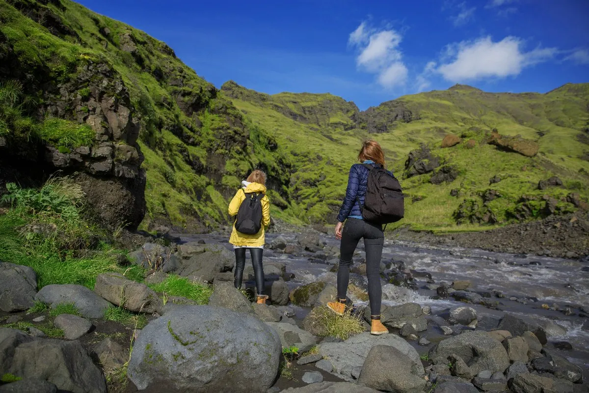 Скоугафосс — водопад шириной 25 метров срывающийся с 60-метрового утеса. В солнечную погоду над ним можно наблюдать двойную радугу, появляющуюся благодаря большому количеству брызг. Джастин Бибер снимал здесь клип к песне I’ll show you.