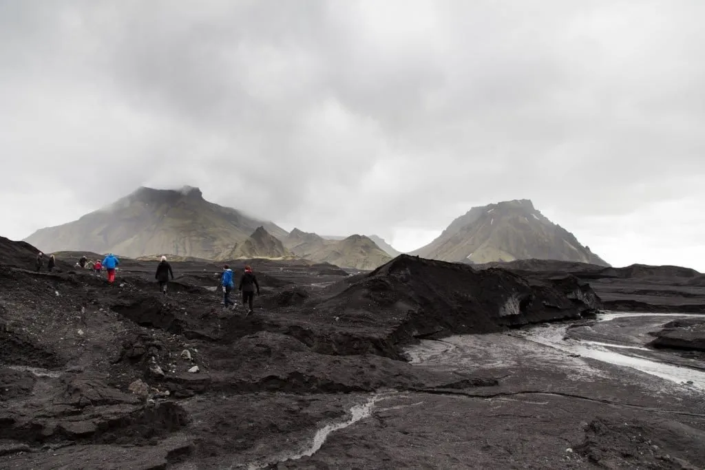 Трансфер к кратеру на машине невозможен из-за отсутствия дороги. От места стоянки следует пройти 3 км по лавовому полю. На месте группе выдается снаряжение: шлем и страховочные ремни.