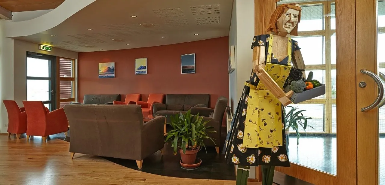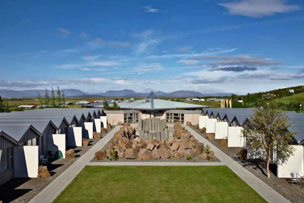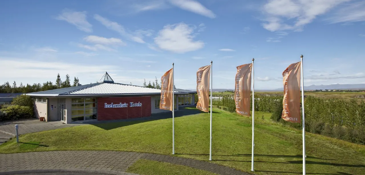 Icelandair Hotel Fludir — отель в деревне Флудир, в 12 минутах ходьбы от горячего источника Секретная лагуна. В отеле 32 номера с деревянным полом и выходом в сад, где гости могут отдохнуть в джакузи, пробуя закуски и напитки из бара отеля. В ресторане отеля готовят блюда из мяса, овощей и фруктов, выращенных в деревне.