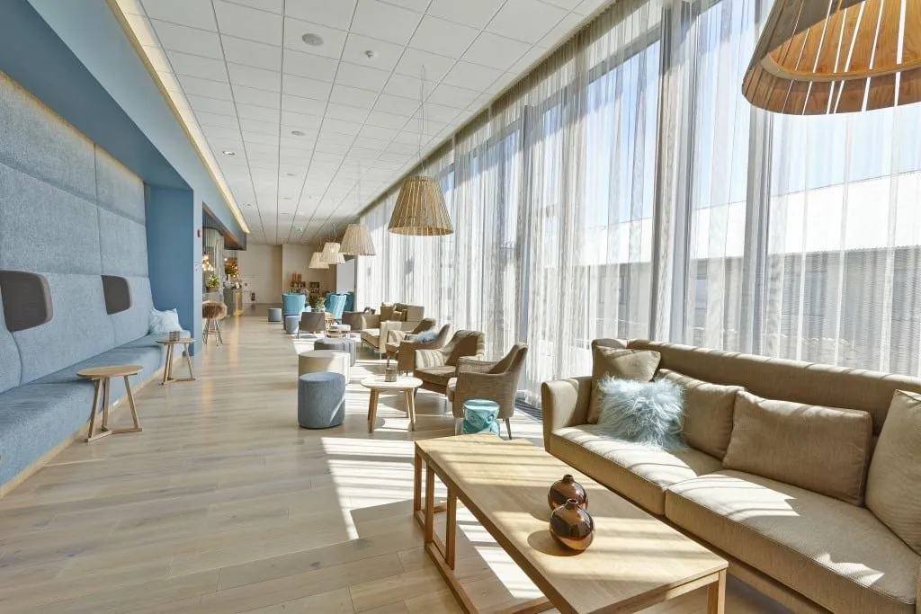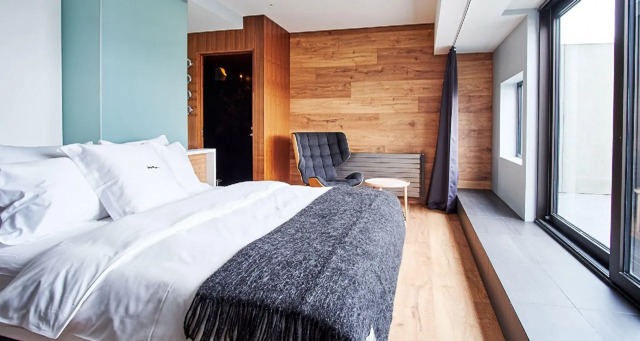 ION Luxury Adventure Hotel — урбанистический отель в часе езды от Рейкьявика. 46 номеров с панорамными окнами и высокими потолками, отапливаются за счет термальных источников. Все предметы интерьера сделаны из перерабатываемых материалов. Например, мебель — из обломков дерева, выброшенных океаном на берег, а элементы декора — из застывшей лавы и вулканического пепла.