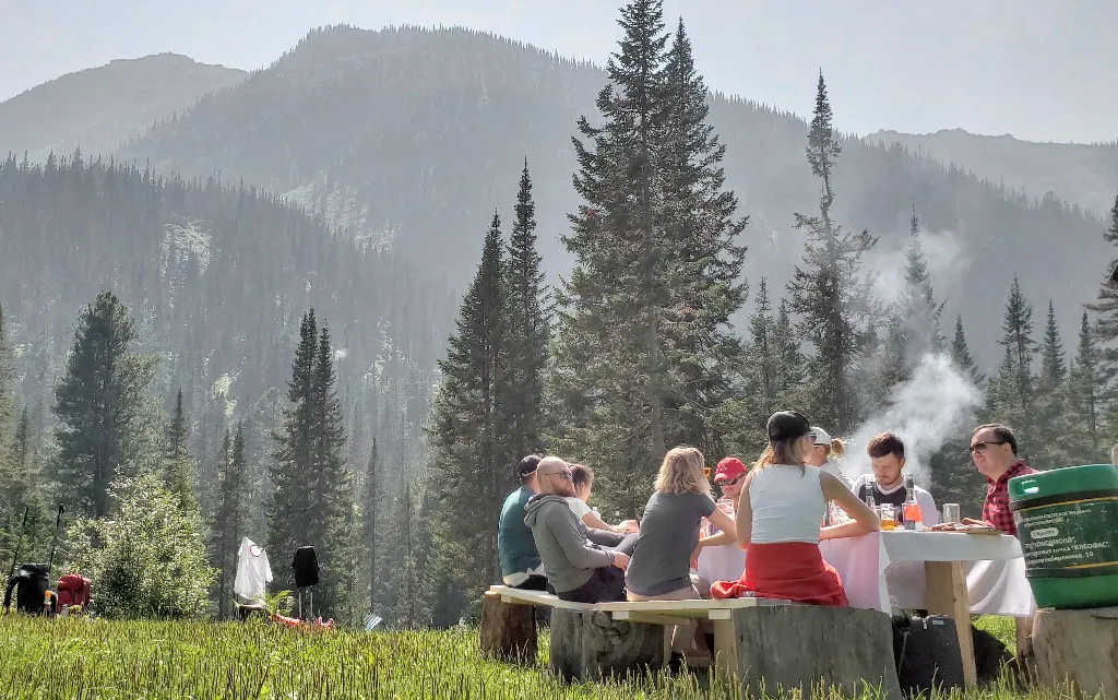 Тропа всего 5 километров, но из наших гостей ее смогла осилить только одна группа. Хоть мы с Яной и моими родителями бегали туда-обратно за 4 часа. Если это окажется тяжелой задачей, ничего страшного — там везде красиво. Пройдете сколько сможете вдоль горной реки, а как устанете устроим привал, разведем костер и заварим иван-чай. Проводник возьмет с собой сало, мясо, соленый омуль, пироги с клубникой и брусникой. После обеда вернетесь обратно тем же путем.