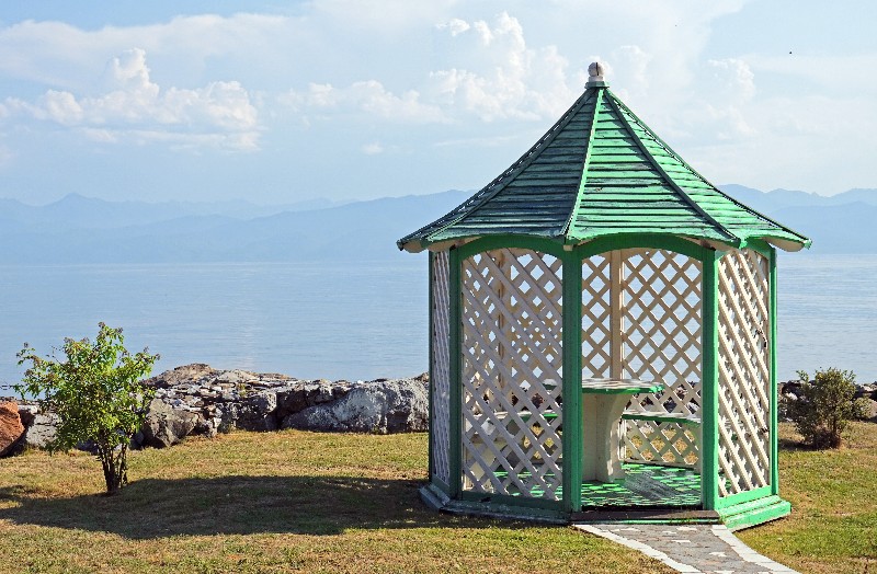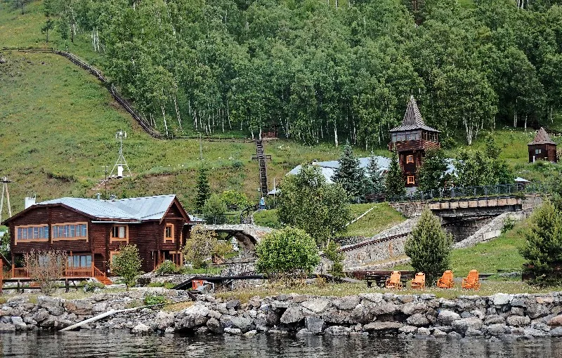 Гостевой дом находится в 130 километрах от Иркутска, на территории Прибайкальского национального парка, в 5 метрах от берега Байкала. Построен в уединенном месте и предназначен для принятия высокопоставленных гостей. Тут отдыхали: патриарх Феодор II, Дмитрий Медведев, Владимир Якунин. По территории проходит ветка Кругобайкальской железной дороги — не беспокойтесь, поезда здесь проезжают пару раз за сутки.
