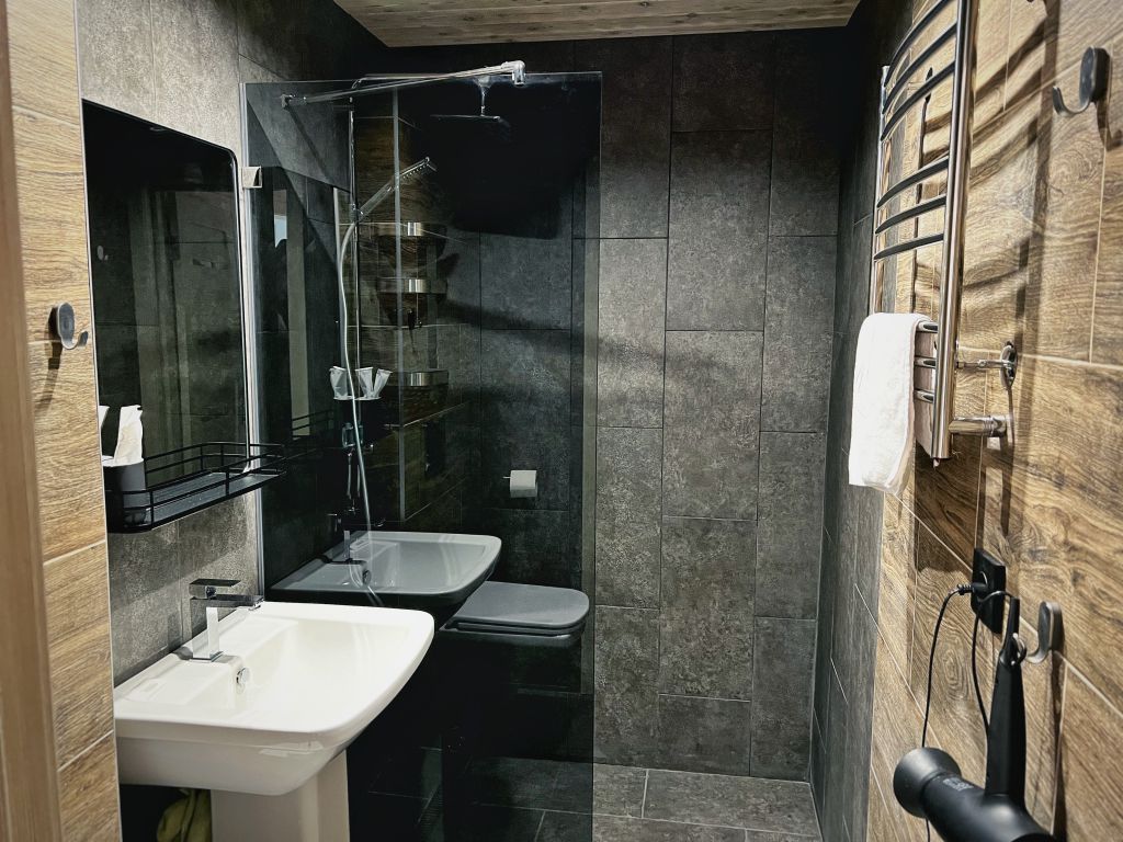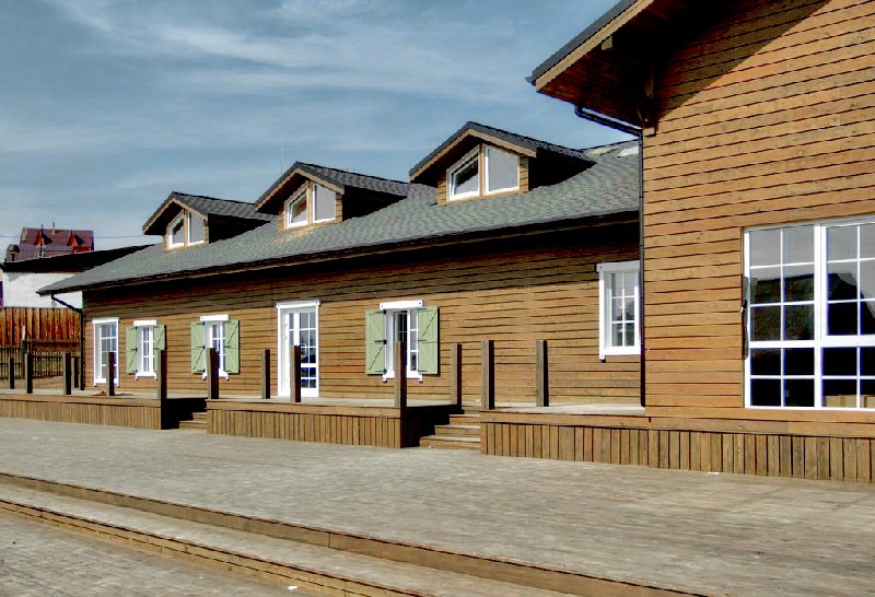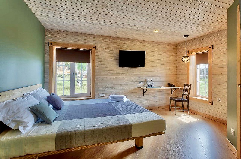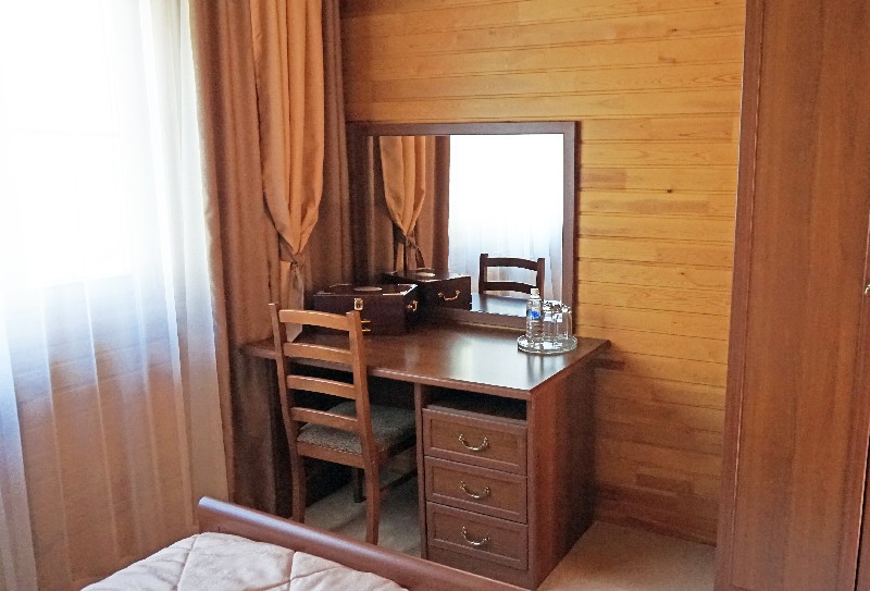 На территории отеля: апре-ски бар, два дома на 4 номера, основной дом площадью 160 м2 с тремя спальнями, каминным залом, баней, купелью и возможностью разместить там 6 человек. Общее количество спальных мест — 20. До берега Байкала пешком 10 минут.