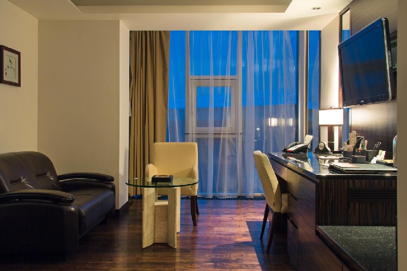 В здании три ресторана. «Киото» — с японской кухней, «Стрижи» — европейской, а «Рокс» — это американский гриль-бар с бургерами, стейками и пивом. На первом этаже отеля есть спа-центр, где предлагают программы по релаксации: массажи, обертывания, стоун-терапию, косметологические процедуры. Для проведения совещаний есть переговорная на 12 человек оборудованная проектором, экраном и флипчартом.