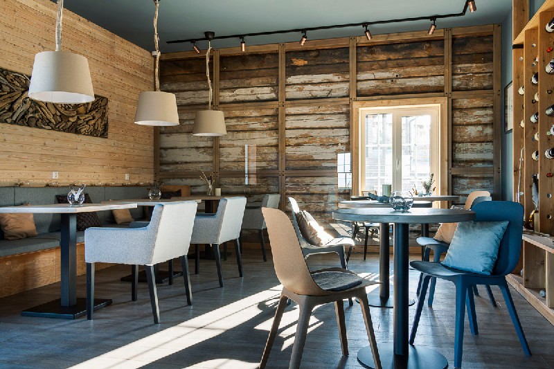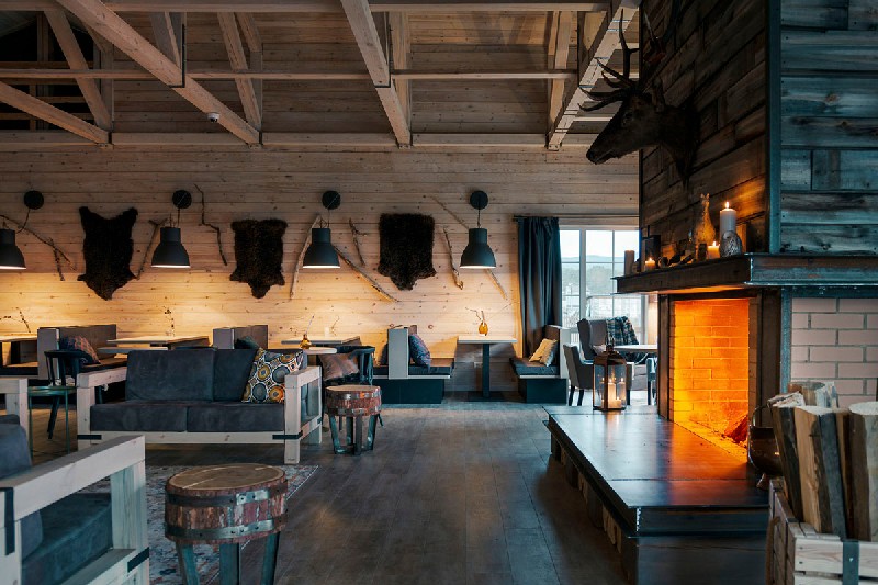 Центральное место здесь — кофейня и ресторан. Их интерьер создала Анастасия Байкалова — иркутский дизайнер. В прошлом году это место даже отметил журнал AD. Брутальная мебель из дерева, камин высотой 7,2 метра, грубый металл — часть деталей осталось в наследство от завода. Кухня в ресторане русская и европейская