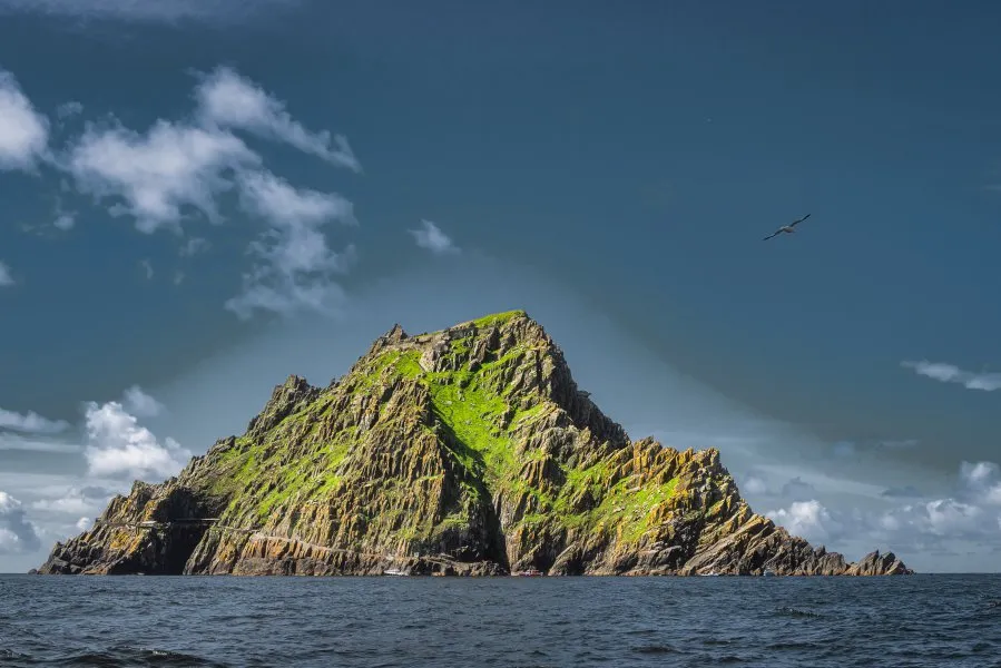 Крутой скалистый остров-утес в 15 километрах к западу от побережья. Занесен в 2006 году в список Всемирного наследия ЮНЕСКО. Тут находится самый старый в Ирландии христианский монастырь. В шестом веке здесь обосновались христианские монахи. Они жили в каменных хижинах в форме улья — такая конструкция не пропускает осадки между камнями. По утрам обитатели спускались по 670 ступеням и ловили рыбу. Остаток дня проводили молясь в часовне и ухаживая за садом.