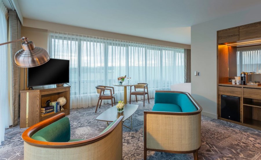 Из номеров открывается вид на богемный район Темпл Бар. В ресторане «Зампас» подают блюда перуанской кухни, приготовленные из свежайших ирландских ингредиентов: севиче с маракуйей, манго, сладкой картошкой и кунжутом; жареная атлантическая треска с белым мисо и луком-шалотом; морской черт с тигровыми креветками, грибами шитаке и китайской черешковой капустой.