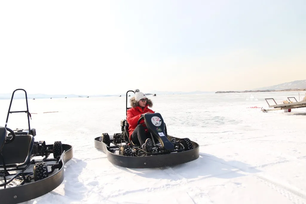 Картинг и багги. Такие развлечения лимитированы. Арендовать багги можно на Малом Море в районе базы отдыха «Хадарта», картинг только индивидуально. Километры чистого льда, резина с металлическими шипами буквально прилипает к поверхности. Можно разогнаться до 120 км\ч. Лучшие места для таких заездов в районе Малого Моря и острова Ольхон, как вариант поближе к Иркутску — поселок Большое Голоустное.