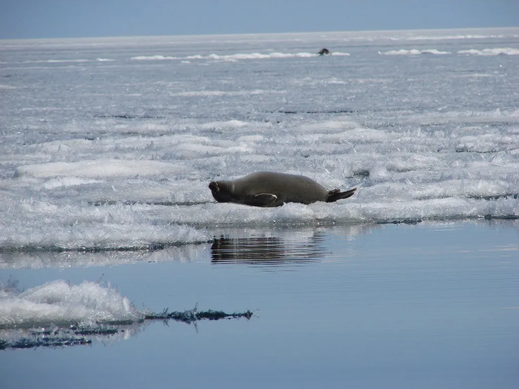 Наблюдение за нерпами. Весной, в середине апреля, когда начинает тает лед, есть возможность оправиться посмотреть на нерп. На хивусах группа с биноклями и фотоаппаратами передвигается среди дрейфующих льдин и выслеживает нерпу. Она периодически выбирается, чтобы погреться на солнце. Не группа, а нерпа. Глушится мотор, все выходят на лед и пытаются к ней тихо подойти, чтобы сделать фото. Как-то так.