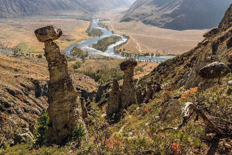 Алтай — это место контрастов. В один сезон здесь можно увидеть зеленые кедры, бирюзовые озера, снежные долины и голубые водопады. Можно ехать по асфальтированному Чуйскому тракту и попасть на «Марс»: в долине реки Кызыл-Чин цвет гор приобретает красный оттенок из-за полиметаллической руды.
