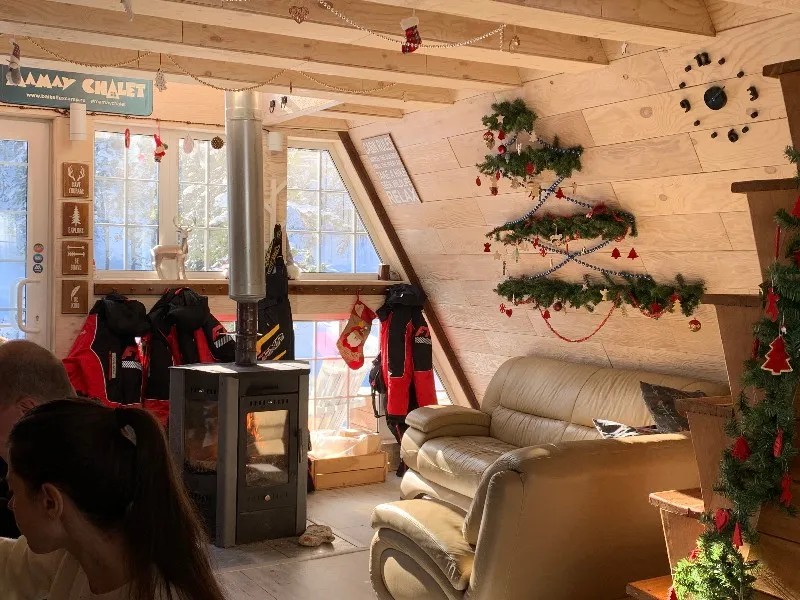 Дорога до базового лагеря, где сосредоточены все зимовья и мамайская тусовка, займет два–три часа. Зависит от того сколько снегоходов будет в колонне, чем больше колонна, тем естественно движение медленнее. По прибытии команда размещается в шале. Камин, диван, кухня, туалет — все максимально комфортно. Здесь мы обедаем. Обычно это ассорти из домашних пельменей, которые наш шеф фарширует говядиной, свининой, олениной, креветками и байкальским омулем.