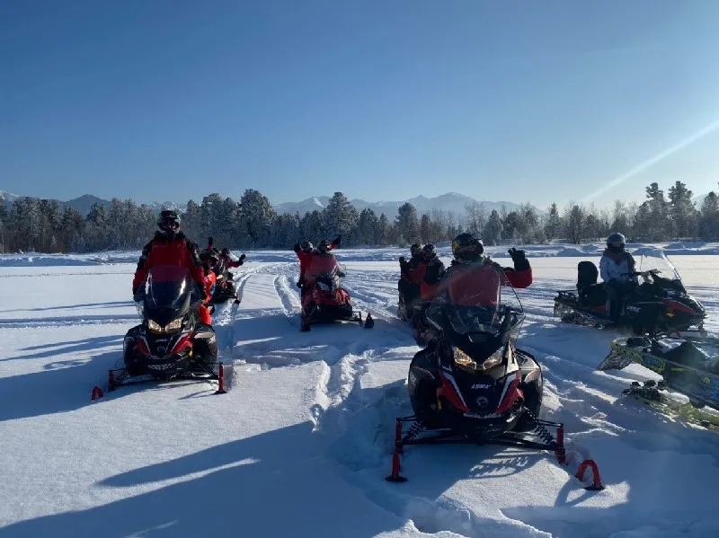 Второй день, после завтрака вы получаете экипировку: снегоходные комбинезоны, шлемы, перчатки, сапоги и подшлемники. Все экипировка профессиональная, утепленная, чтобы вы до вечера даже не задумывались о том, что где-то отмерзло ухо или отвалились пальцы. Как переоденетесь, за вами заедет автомобиль, который доставит всю группу на лед Байкала. Там уже будут ждать снегоходы.