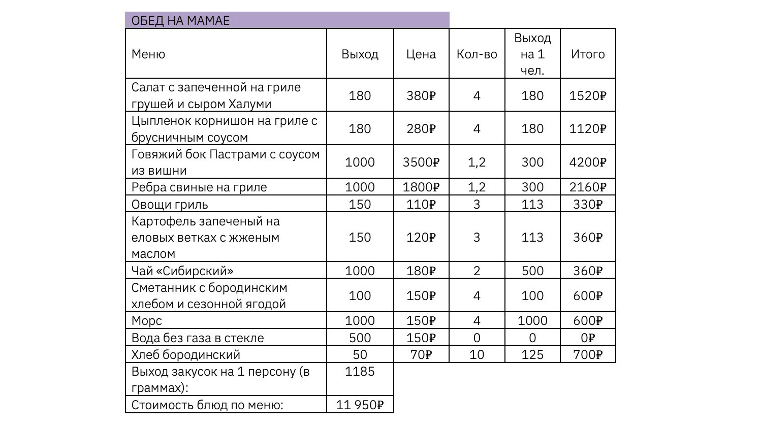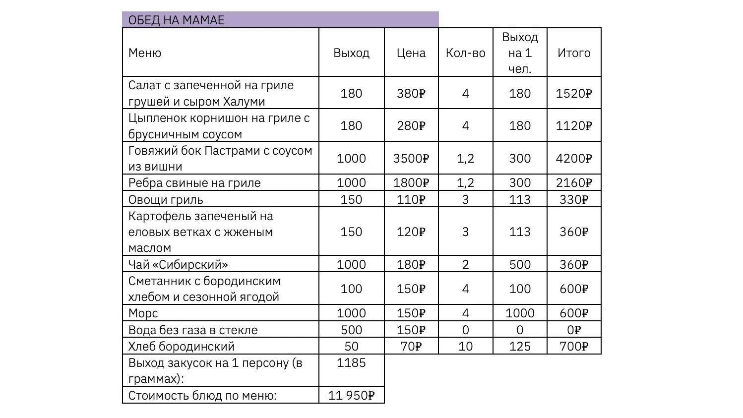 На этом этапе программа и смета уже на 90% близки к реальности. Но это еще не финал — дальше нужно проработать меню и добавить дополнительные услуги.