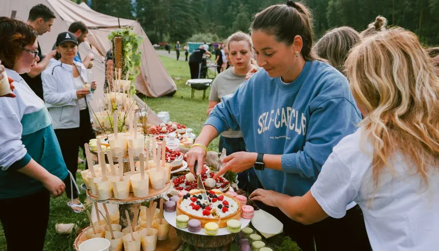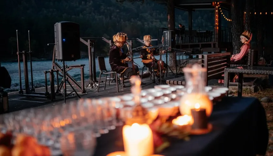 Любой кейтеринг мы разнообразим квизом, показом фильма на надувном экране, дегустацией 30 видов местных наливок, дискотекой и фейерверком. В завершении организуем выступление местных алтайских этнических музыкальных групп, чтобы подарить уникальный культурный опыт, который вы не забудете.