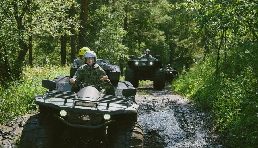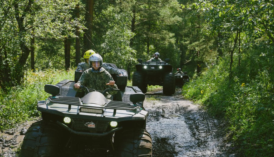 Наши инструкторы перед стартом подчеркнут важность соблюдения мер безопасности и предоставят специальное снаряжение — шлемы, защитные костюмы, резиновые сапоги и перчатки. Важно отметить, что к управлению допускаются только мужчины, а каждый квадроцикл рассчитан на двух человек. Техника укомплектована багажниками для личных вещей.