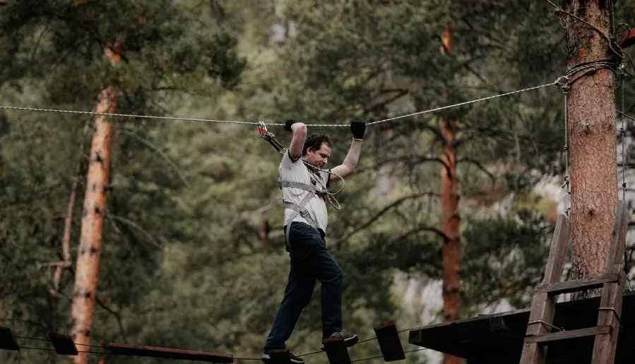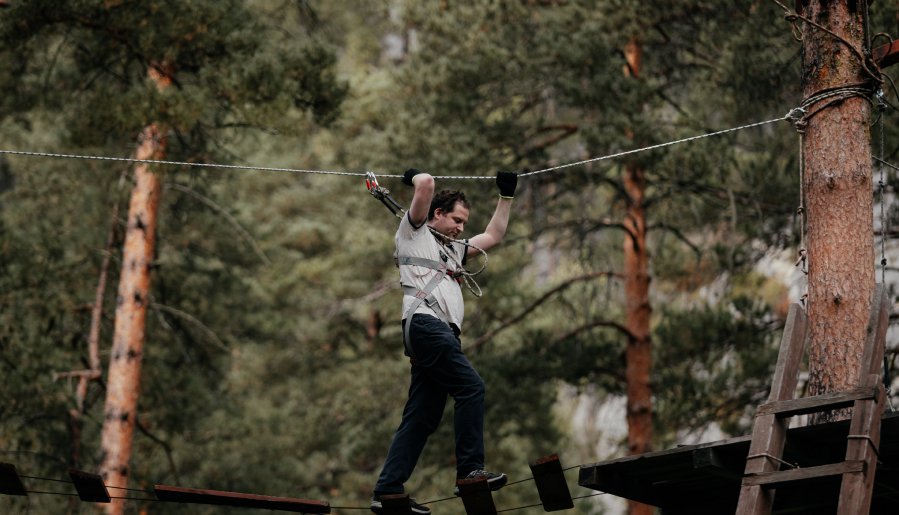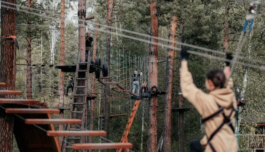 Чтобы испытать прилив адреналина, можно организовать групповое мероприятие в парке экстремальных развлечений. В парке десятки искусственно созданных препятствий, закрепленных между деревьями на разной высоте. Здесь каждый может выбрать маршрут, соответствующий уровню своей подготовки. У подвесных трасс несколько пересечений, что позволяет посетителям преодолевать препятствия в любом порядке и в своем собственном темпе.