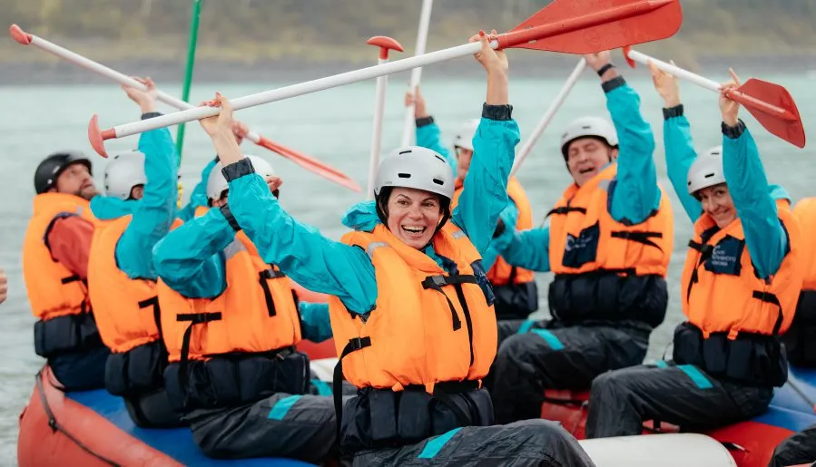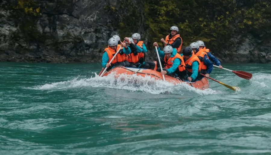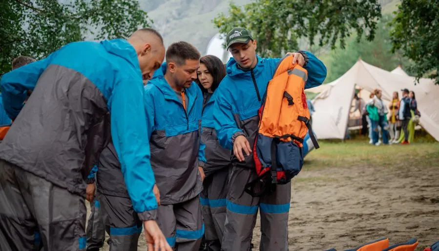 На выбор мы готовы предложить несколько точек для сплавов. Конкретно для корпоративных программ мы отобрали самые живописные маршруты, которые в то же время максимально удобные с точки зрения логистики, старта и финиша для большого количества участников. У нас собственное снаряжение — рафты, гидрокостюмы, шлемы, спасательные жилеты, обливные костюмы и весла. Наши рафты рассчитаны на 8–10 мест и мы можем устроить сплав для группы до 80 человек.