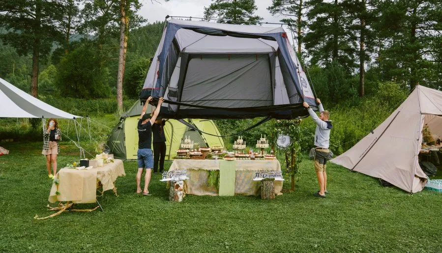 - просторные палатки;