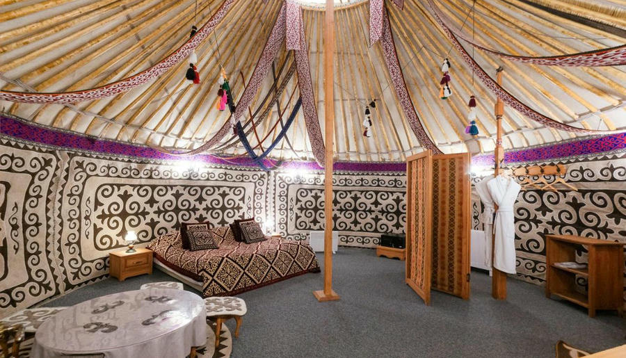 Программу можно дополнить ночевкой в настоящих войлочных юртах, музыкальным шоу, демонстрацией искусства верховой езды или соколиной охоты. А в загородном комплексе «Ой-Карагай» — завершить ужин в самой большой в мире юрте вместимостью до 200 человек, внесенной в Книгу рекордов Гиннесса.