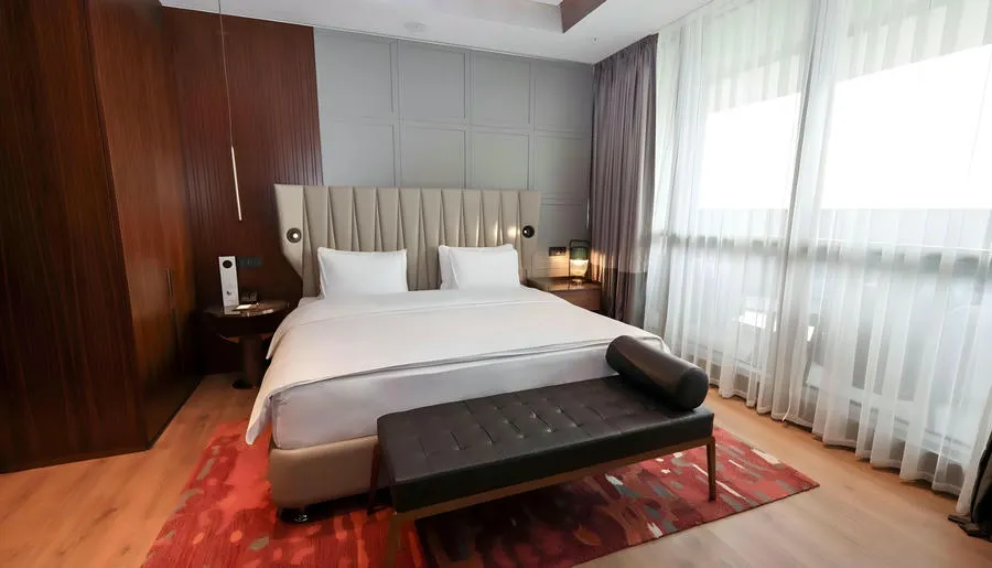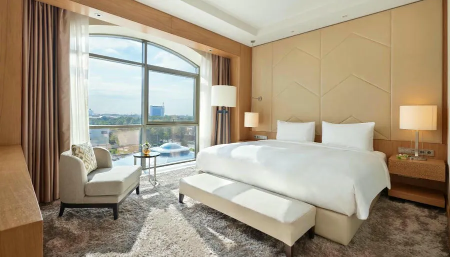 «Хилтон Ташкент Сити». Отель в центре столицы, в 10 минутах от базара Чорсу и оперы Алишера Навои, рядом с метро. Гостей ждут крытый бассейн, спа-центр, терраса на крыше, фитнес-зал, ресторан паназиатской кухни и бесплатная парковка.