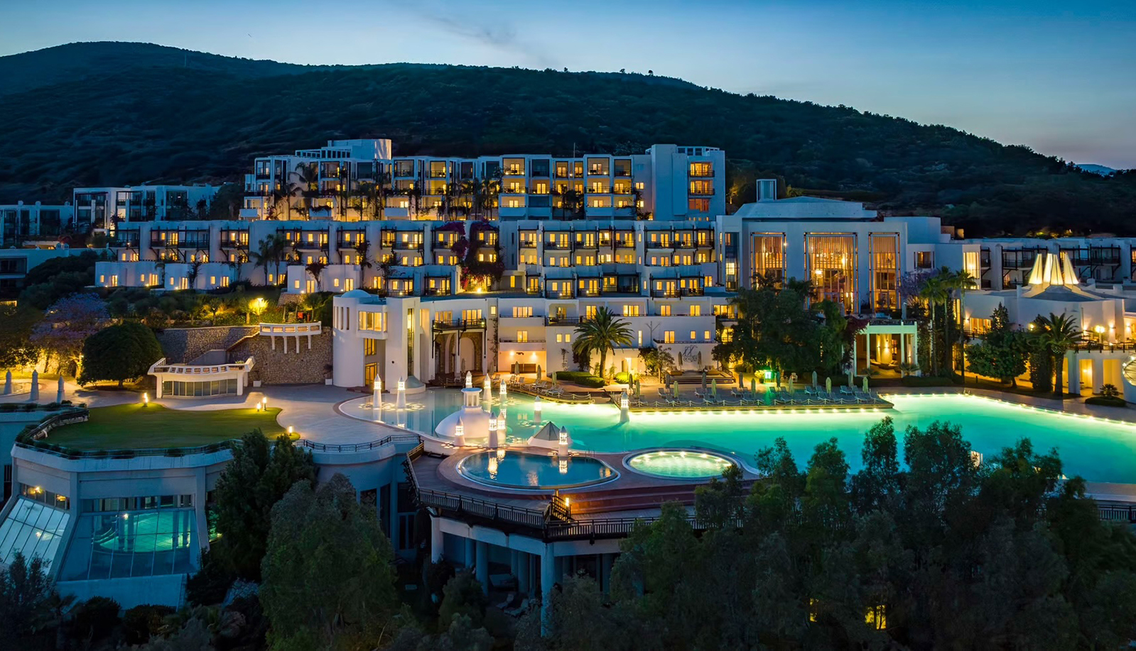 Этот масштабный отель расположен у живописного залива Гюверджинлик и занимает площадь больше 80 000 м². Он создан для семейного отпуска с комфортом, заботой и возможностью не думать ни о чем, кроме отдыха. Все под рукой: просторные виллы, аквапарк, спа-комплекс, 10 ресторанов и собственный пляж. Уровень сервиса — «ультра все включено».